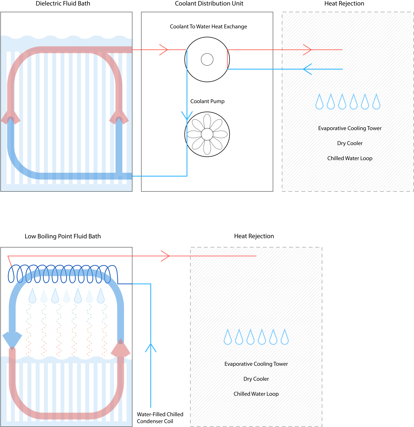 Unlike air cooling, immersion cooling eliminates the need for server fans and reduces the reliance on CRAH units, lowering both power consumption and noise. It also has the potential to significantly reduce water consumption compared to conventional liquid or evaporative cooling, depending on the external heat rejection system used.