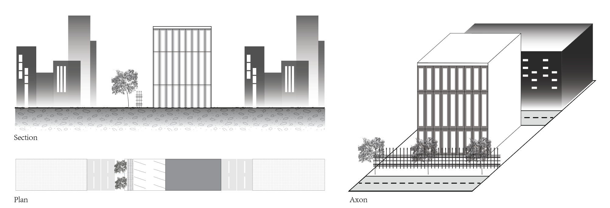 • Flat land + compacted data center + fence + singular tree + city