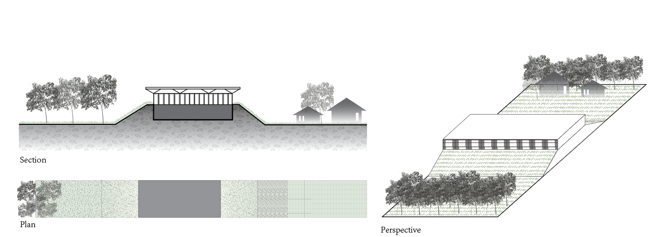 - Modified topography + compacted data center + towed lawn + row of trees