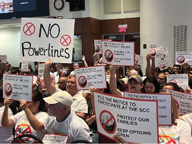 Residents of Loudoun Valley Estates attend the Loudoun County School Board meeting to ask them to be a participant in an SCC hearing about proposed transmission lines in their neighborhood.